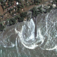 God signed His name in the tsunami that battered Sri Lanka and other countries on December 26, 2005, and sent it as punishment because humans have been ignoring His laws, Sri Lankan Muslims say. Proof, according to Mohamed Faizeen, manager of the Centre for Islamic Studies in Colombo, is a satellite picture taken seconds after the tsunami smashed into Sri Lanka's west coast near the town of Kalutara and as it was receding. "This clearly spells out the name 'Allah' in Arabic," Faizeen said, pointing to the shape of the waves - a gigantic "E" complete with whorls and sidewaves that do indeed appear to combine to resemble the Arabic script for the name "Allah". The picture was taken by the DigitalGlobe Quickbird satellite on December 26 at 10:20am local time, shortly after the moment of tsunami impact. It can be viewed at the website "Allah signed His name," Faizeen said. "He sent it as punishment. This comes from ignoring His laws."